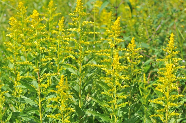 教師が、実物の(セイタカアワダチソウ)等を用いて