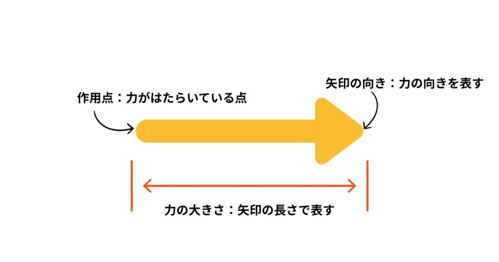 - 大きさ…力の強さを矢印の長さで表す