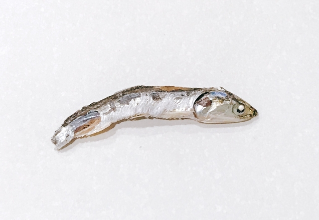 ・乾燥イワシを解剖し、各部を採取・標本にする